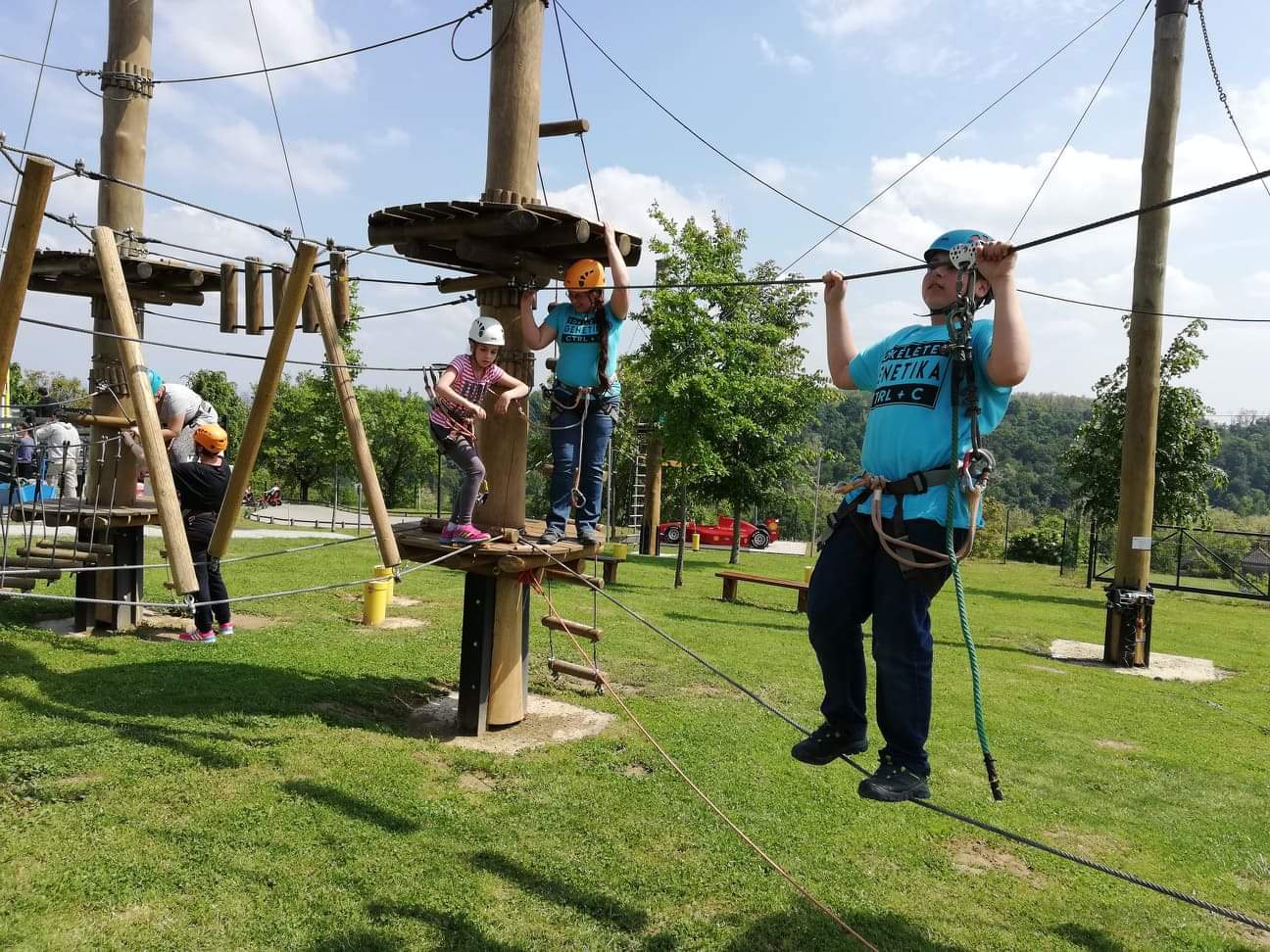 A délelőtt folyamán a kalandpark műfüves pályáján közös sport- és játékos vetélkedőn vettek részt, kipróbálhatták a lábtoll-labdázást, petanque csapatjátékot, speed cupsgyorsasági és ügyességi egyéni játékot, létragolfot, valamint gólyalábra is állhattak.